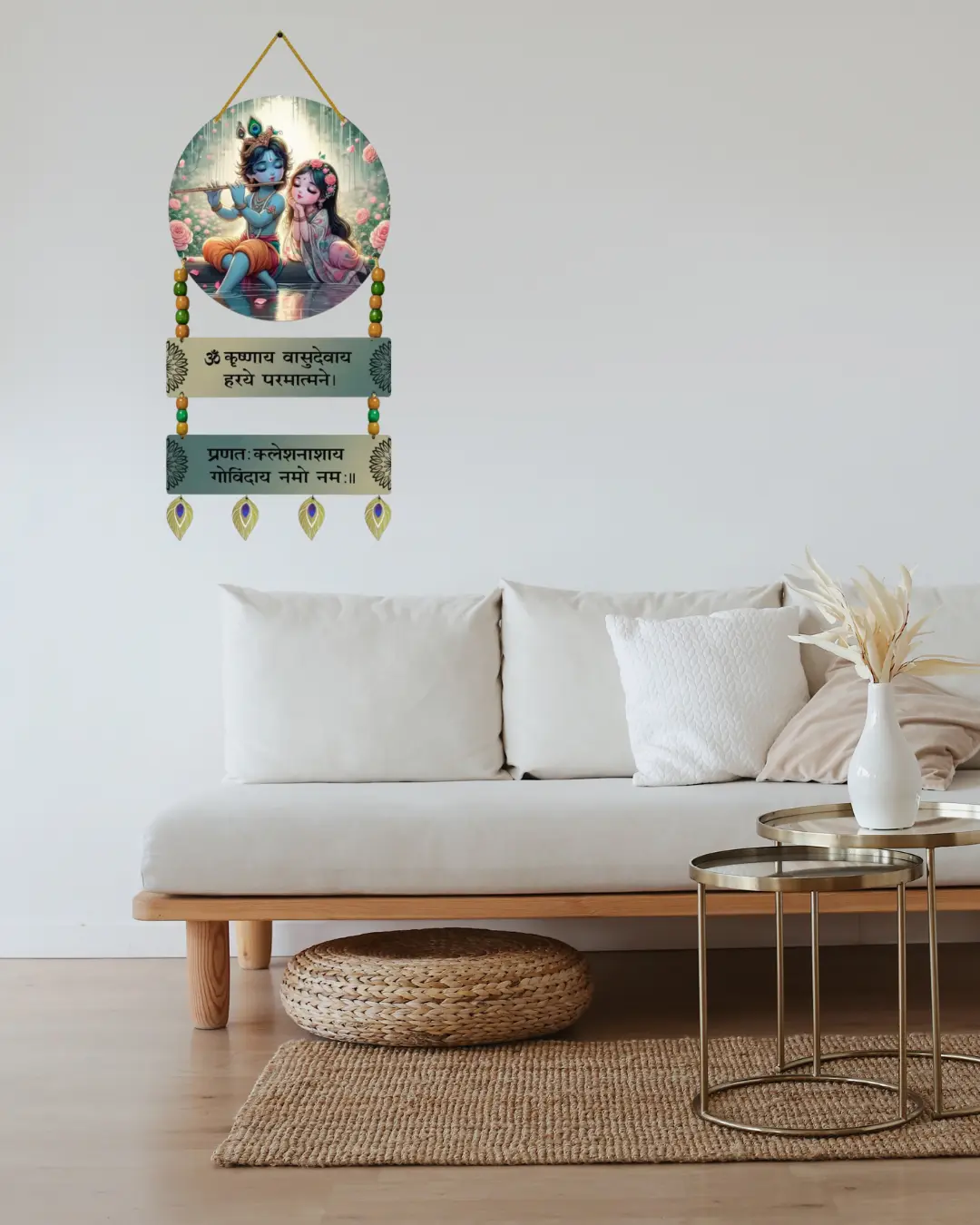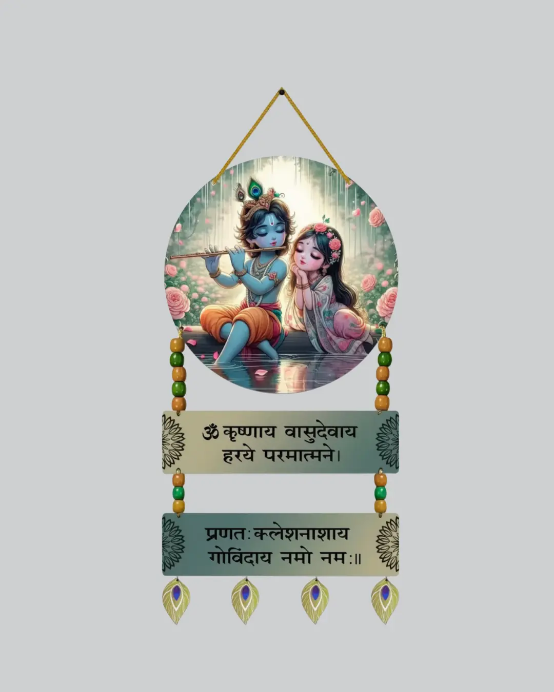 Shri Radha Krishna Wall Hanging with “ॐ कृष्णाय वासुदेवाय” Mantra