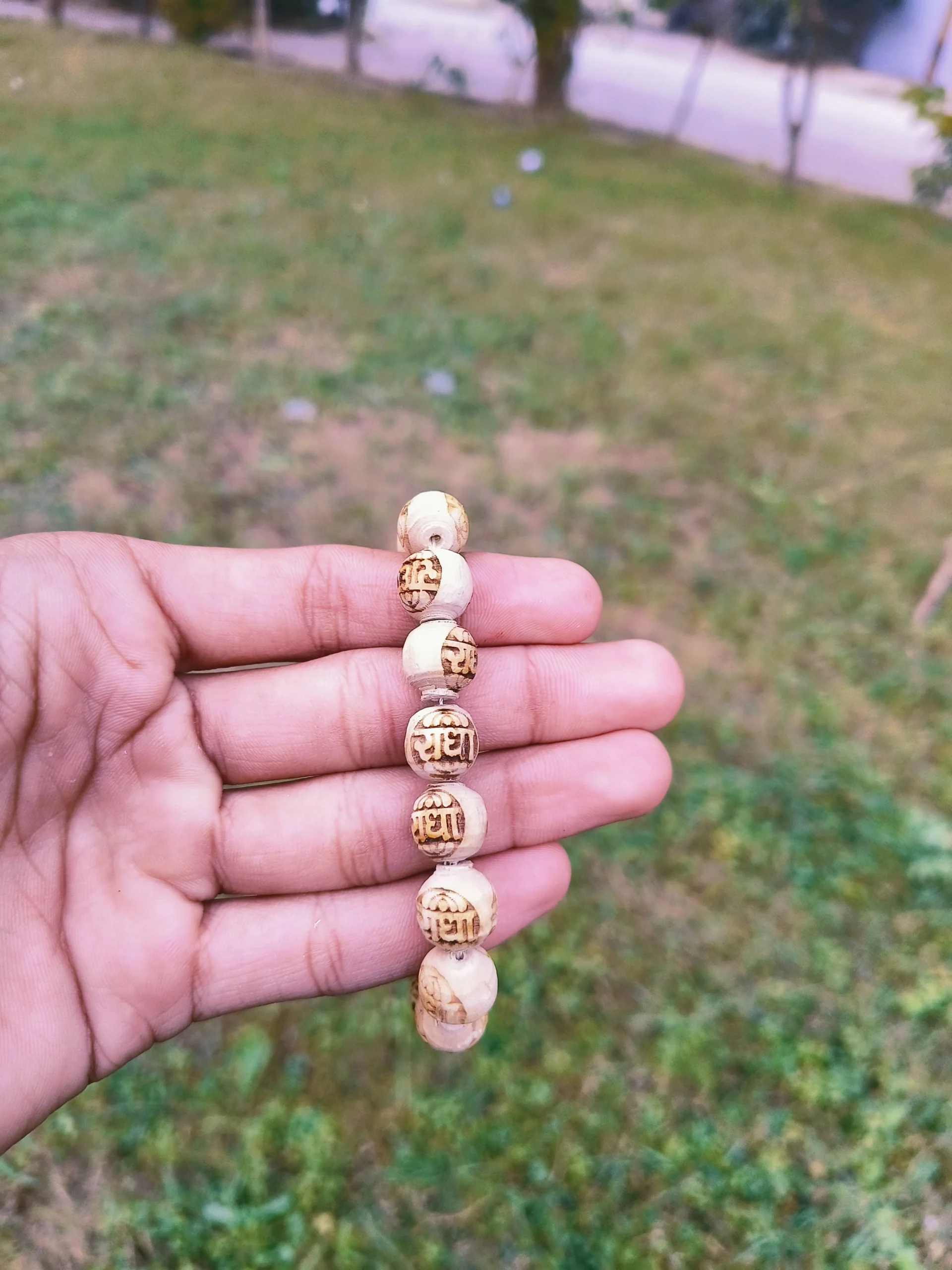 The Radha Naam Pure Tulsi Hand Bracelet is crafted from 100% sacred Tulsi wood and delicately engraved with the divine βRadha Naamβ. Radha Naam is known to awaken pure love, devotion, and inner peace. Combined with the sanctity of Tulsi, this bracelet becomes a powerful symbol of bhakti and spiritual connection.