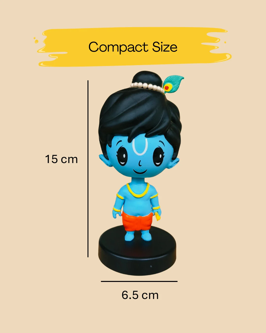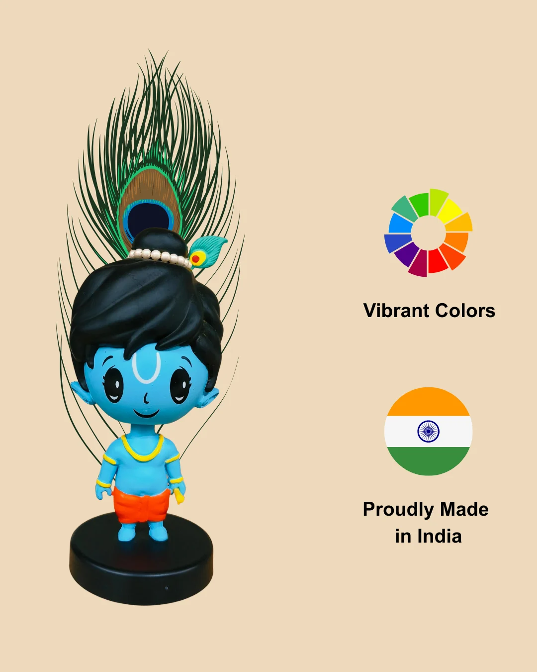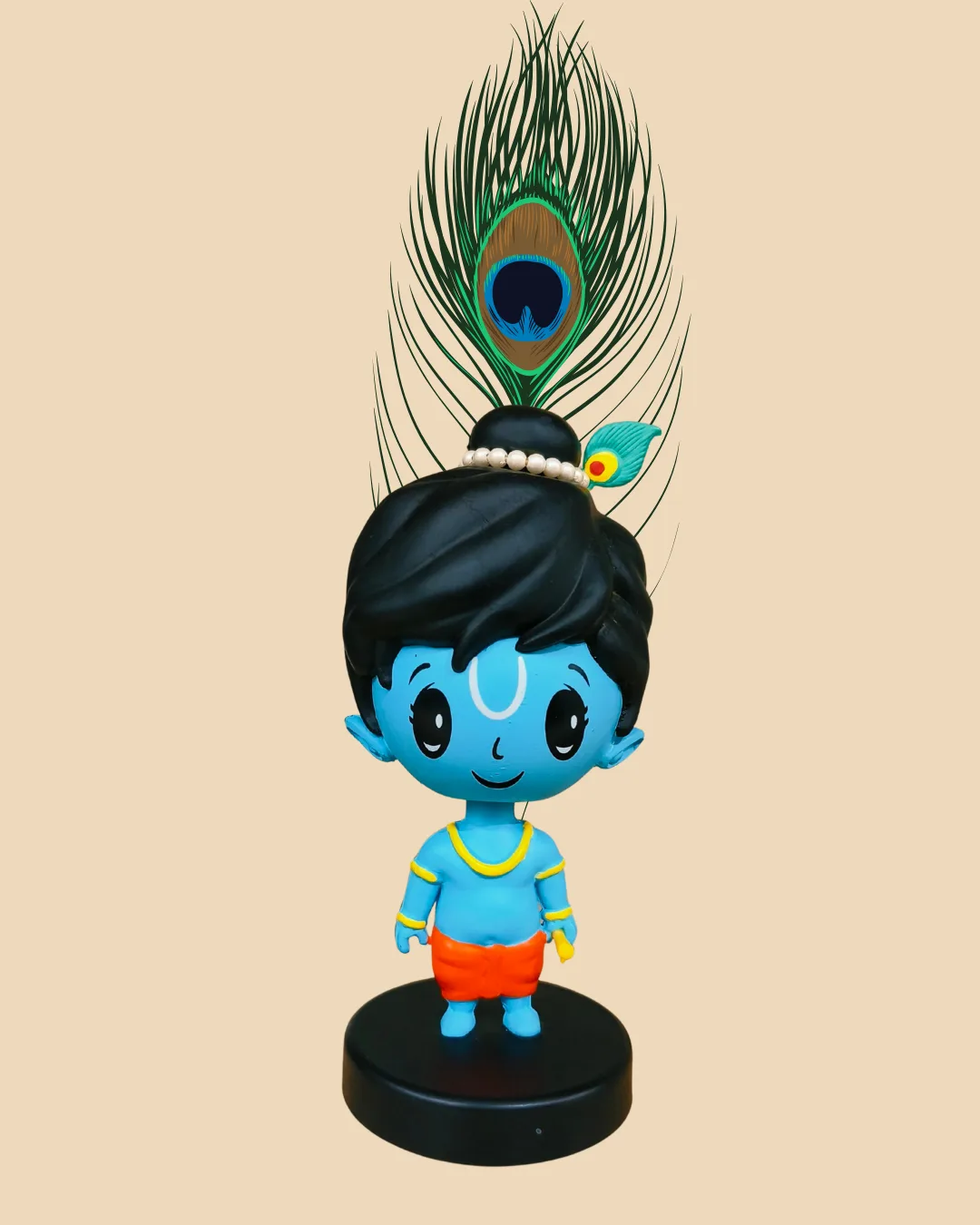 he Lord Shree Krishna Idol Bobblehead is a delightful blend of devotion and decor. Crafted with fine detailing, bright colors, and a smooth finish, this spiritual bobblehead brings joy and divine energy into your surroundings.