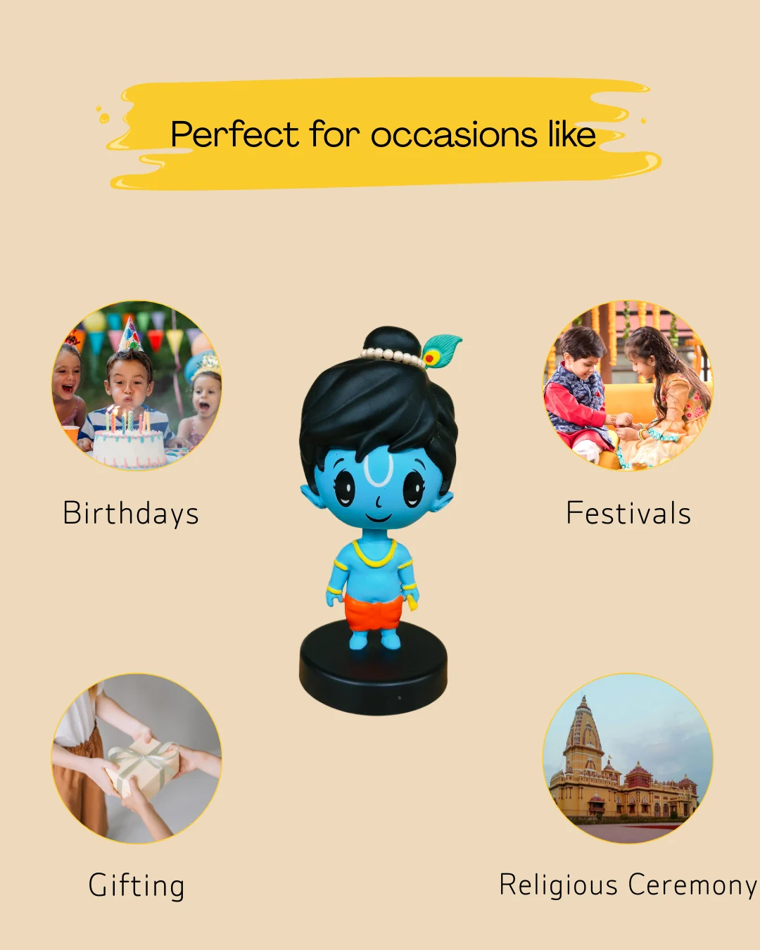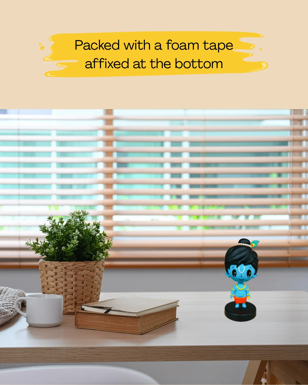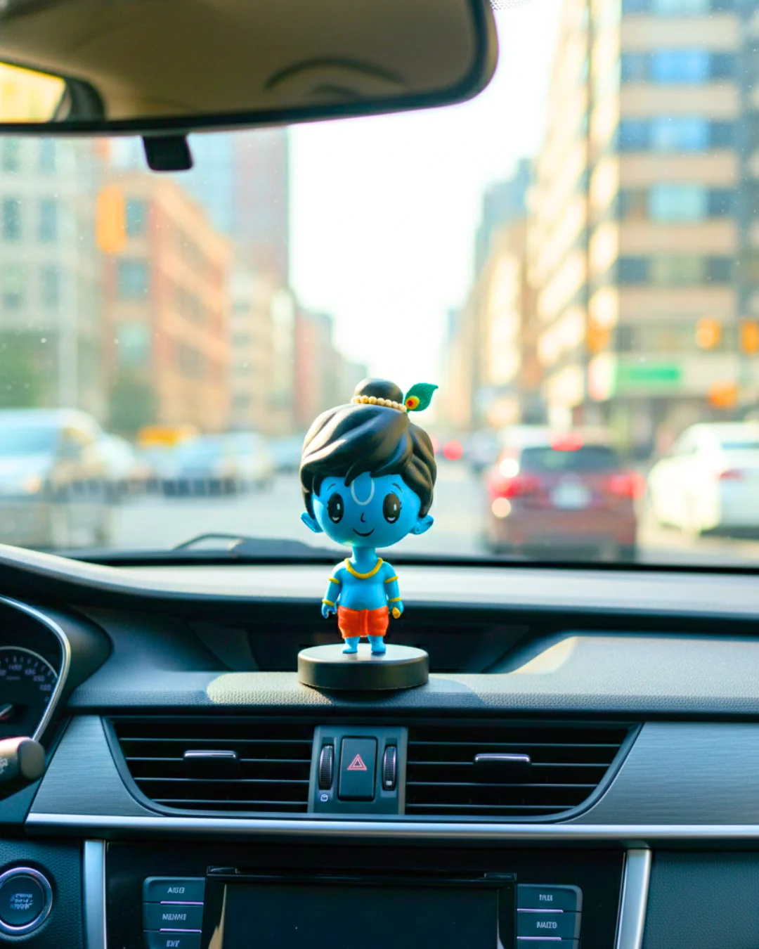 he Lord Shree Krishna Idol Bobblehead is a delightful blend of devotion and decor. Crafted with fine detailing, bright colors, and a smooth finish, this spiritual bobblehead brings joy and divine energy into your surroundings.