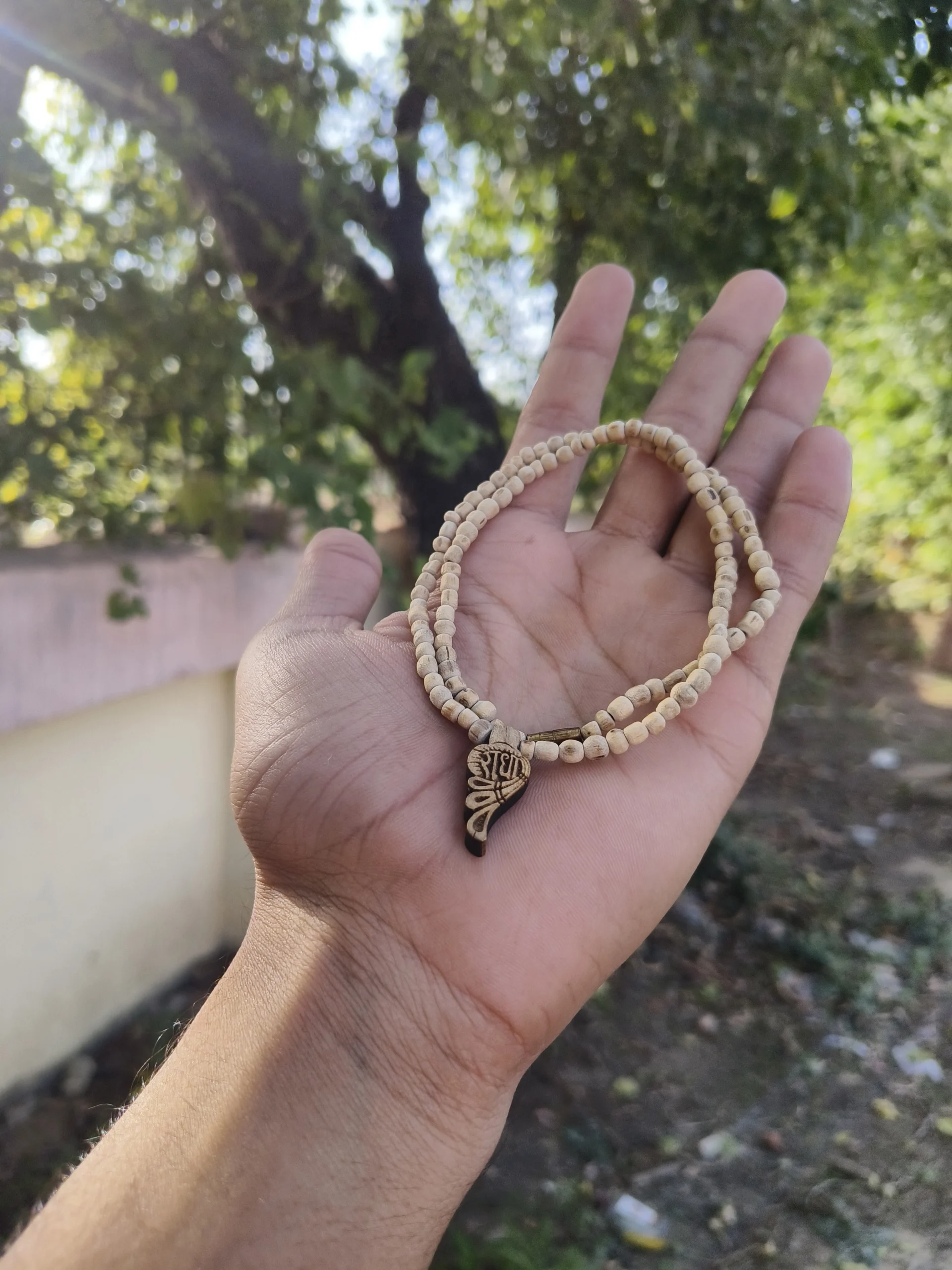 Original Tulsi Kanthi Mala with a beautifully crafted Radha Naam locket, made from pure Tulsi wood beads. Ideal for krishna devotees, this spiritual mala brings peace, positivity , and divine protection – perfect for daily wear, meditation, and puja.